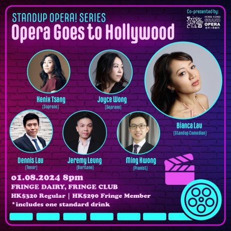 八月一日「Opera栋笃唱」头炮,一众歌唱家来到荷里活,将歌剧的戏剧性和极致的声乐演出与经典电影互相碰撞。发迹自纽约街头的栋笃笑艺人Bianca Lau获《The Beat Asia》誉为「香港最搞笑的喜剧演员之一」,她的演出以融荟幽默、机智和原始情感着称。Bianca将带领本地着名女高音曾丽婷与黄华裳、男高音刘础恒和男中音梁浩轩,为你演绎众多曾于电影中登场、选自《唐•乔望尼》、《蝴蝶夫人》和《杜兰朵》等着名歌剧的经典咏叹调和二重唱。