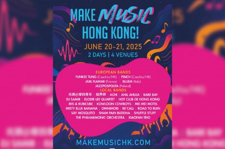 香港法国文化协会暨法国驻香港及澳门总领事馆非常荣幸呈献第八届「觅音乐」音乐节。第八届「觅音乐」音乐节将于 6 月 20-21 日在艺穗会、逸东酒店 Terrible Baby、The Wanch 以及 Trilogy 举行一连两日音乐节,五队欧洲乐队及二十队本地乐队将为香港乐迷带来精彩表演!「觅音乐」音乐节由香港法国文化协会暨法国驻香港及澳门总领事馆呈献,由欧盟驻港澳办事处资助,并获波兰共和国驻香港总领事馆、捷克共和国驻香港总领事馆、及意大利驻港文化处鼎力支持。感谢合作夥伴法国五月艺术节、酒店伙伴及场地赞助 Terrible Baby、场地赞助 The Wanch、Trilogy 以及场地伙伴艺穗会的支持,令「觅音乐」音乐节得以成功举行。