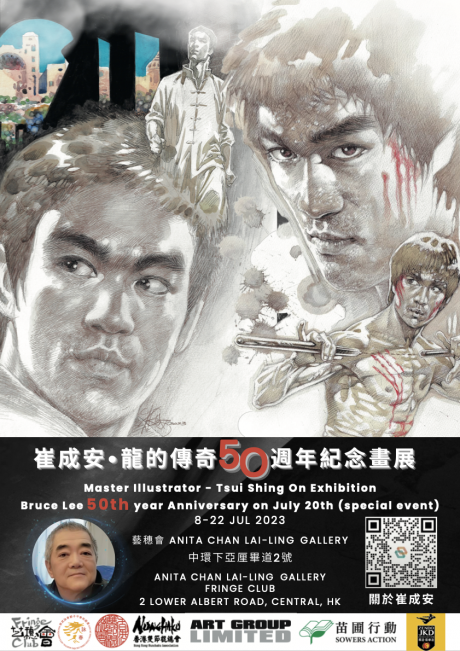 由藝穗會主辦,藝群協辦的《崔成安 • 龍的傳奇50週年紀念畫展》將於2023年7月8日至22日在藝穗會 陳麗玲畫廊舉行。是次畫展將展出由著名畫家崔成安老師創作的李小龍原稿畫作,紀念這位傳奇武術家和演員的成就和貢獻,向這位傳奇武術家和演員致敬。