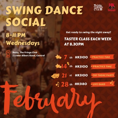 藝穗會和 Hong Kong Swings將於二月為您帶來《搖擺舞之夜》,讓你與親朋戚友及其他舞者一起享受搖擺舞的樂趣。此節目