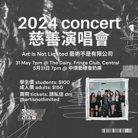 Art Is Not Limited 又開show喇! 出完新歌,播放率破萬嘅香港少年樂隊 Art Is Not Limited 將表演他們的所有原創作品 (隊長Sonja包辦作曲填詞),以及YOASOBI,Fall Out Boy等其他樂隊的熱門歌曲。 Art Is Not Limited其實是於2018年成立的音樂非營利組織,並一直通過演唱會、街頭表演等活動爲低收入家庭提供音樂學習和表演機會。 這場音樂會的所有利潤將會捐贈給PMA 樂苗基金 (香港音樂慈善機構)。