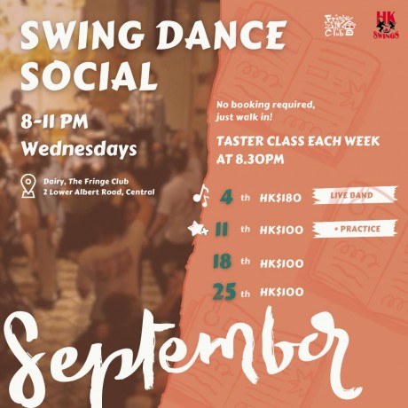 藝穗會和Hong Kong Swings將於九月為您帶來《搖擺舞之夜》,讓你與親朋戚友及其他舞者一起享受搖擺舞的樂趣。此節目將會邀請導師提供半小時的搖擺舞教學,讓大家學習新的搖擺舞動作,感受不一樣的歡樂!隨後數小時大家可以於舞池盡情享受搖擺舞、自由社交。 期待每星期三與您一起在藝穗會度過難忘的一晚!